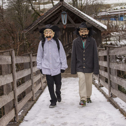 Eine lärmende Gruppe anders gekleideter Personen, rennt kreuz und quer auf dem Dorfplatz von Vorderlanersbach umher. Alles was eindeutig erscheint, ist dass keiner der Gruppe weiss wohin es als nächstes gehen wird. Dieser bunte Haufen umfasst einige Personen in Tracht, eine in Lederhose gekleidet und einige nicht definitiv zuzuordnende Verkleidungen. Ihre Gesichter sind verborgen unter Gummimasken, die aber durchaus freundliche Züge tragen.