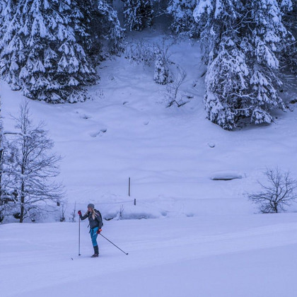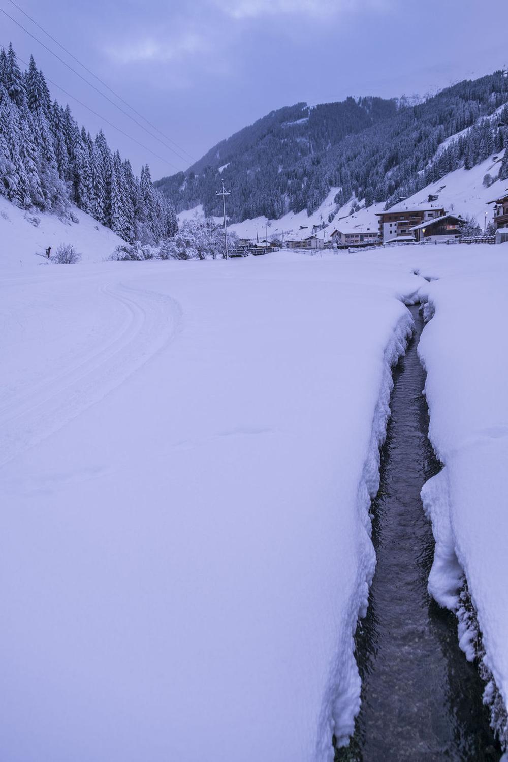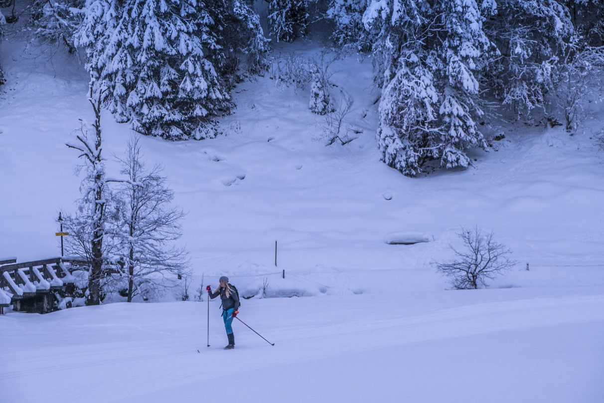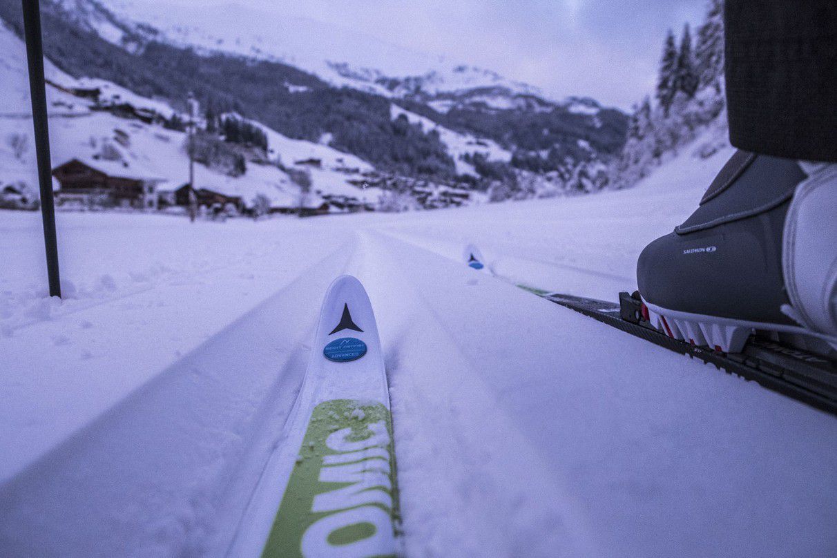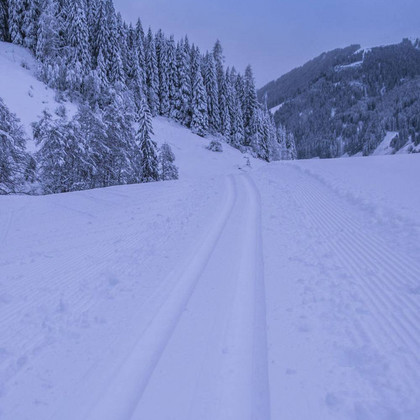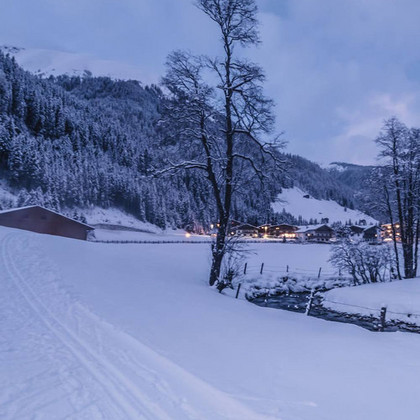 Während das inmitten einer Großstadt nicht gar so einfach ist, wissen die Bewohner des Tuxertals sehr wohl um den Luxus den sie alle direkt vor der Haustüre haben. Die 14 Kilometer lange „Luggi-Gredler-Loipe“ verbindet das Hochtal von Vorderlanersbach bis Madseit, den letzten Ortsteil vor Hintertux und dem Hintertuxer Gletscher. Auf dem zumeist schmalen Talboden verläuft die Loipe mittig zwischen Winterwanderweg und Häusern, Hotels, Schule, Eislaufplatz und Tux- Center. Die Ausrede „zu weit entfernt“ gilt hier also auf keinen Fall. Vom finnischen Gast bis hin zum Direktor der Neuen Mittelschule Tux treffe ich eine Menge Menschen auf der Loipe. Manche machen es recht gemütlich und nehmen die Chance auf einen kleinen „Loipen-Plausch“ gerne an, andere schießen mit professionellen Schwüngen auf der Skatingspur an mir vorbei.