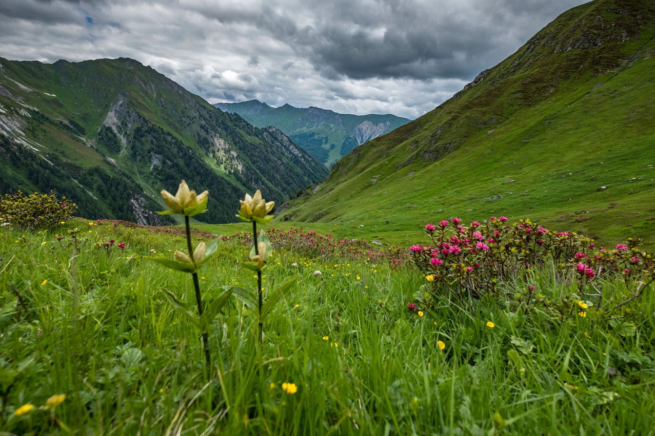 In unseren gemäßigten Breitengraden beginnt der Sommer meist schon Ende Mai, ausgenommen die ganzen Wetterkapriolen, die uns der Klimawandel bringt. Die Almen liegen meist auf 1.400-2.300 Metern Höhe, da liegt um diese Jahreszeit zumeist noch tiefer Schnee! Die Vegetationszeit in den Alpen beträgt im Schnitt 3 Monate und auch in dieser Zeit sind die Pflanzen Kälte, Regen, Sturm und, wenn sie da ist, extremer Sonneneinstrahlung ausgesetzt. Deswegen verfügen die Pflanzen im Alpenraum über einen extra Schutzmantel aus Fetten. Die meist kleinwüchsigeren Pflanzen wachsen schneller und produzieren weitaus mehr Omega-3-Fettsäuren, als ihre Verwandten in den niederen Regionen, um sich selber zu schützen. Darum ist die Sommerfrische für die Kühe, als auch alle anderen Weidetiere, eine wahre Rehabilitation zu der langen Stallzeit im Winter und dem Heu und Zusatzfutter, welches sie in dieser Zeit bekommen. Die Almzeit dient also nicht nur den Bauern dazu die Wiesen mähen zu können, um das Heu für den Winter einzubringen, sondern auch den Tieren um ihr Immunsystem wieder aufzubauen und zu bester Gesundheit zu gelangen.