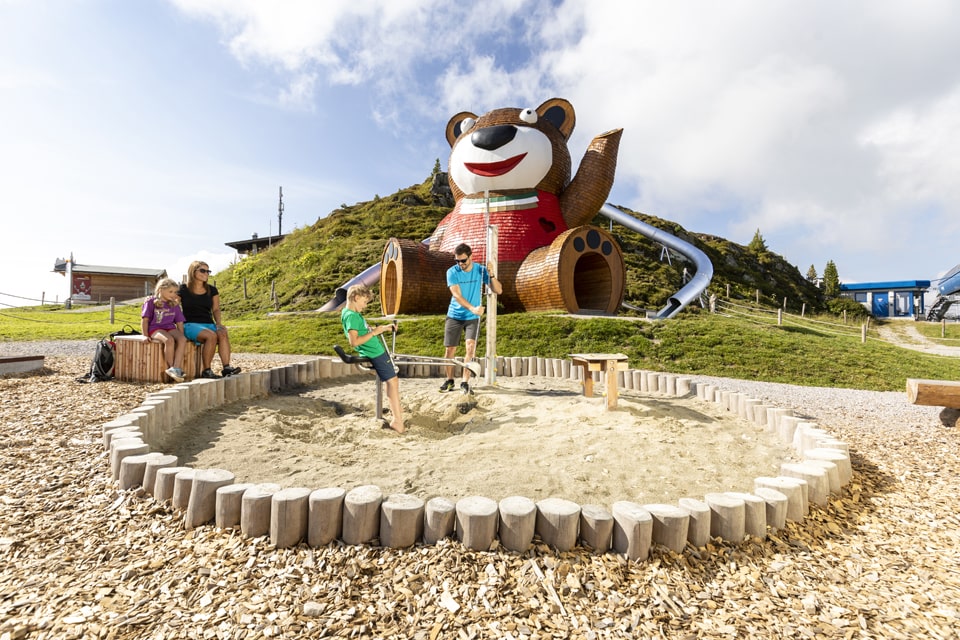 Kids can let off steam with Luis Gletscherflohsafari or Lui's ball safari on the hiking area of the Sommerbergalm.