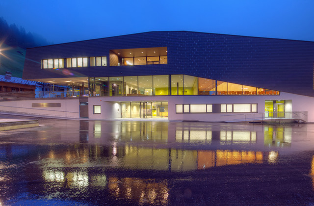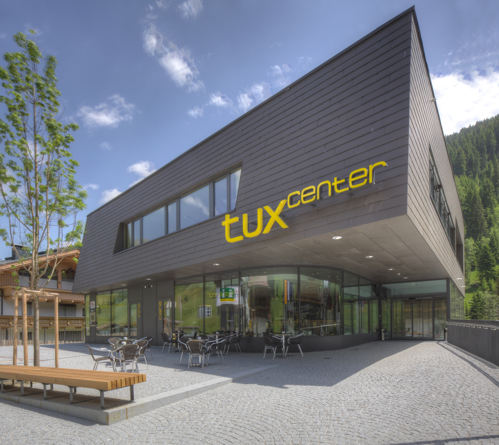 Auf 1300 Metern Seehöhe, inmitten der faszinierenden Bergwelt und dem überwältigenden Blick auf den Hintertuxer Gletscher, zeigt sich das neu errichtete Tux-Center als Ort der Begegnung, der Raum für neue Ideen schafft. Auf einer großzügigen Fläche von 4.291 Quadratmetern entstand ein barrierefreies Veranstaltungszentrum mit eigener Tiefgarage, das durch moderne Architektur, kombiniert mit dem traditionellen Baustil des Tales besticht.