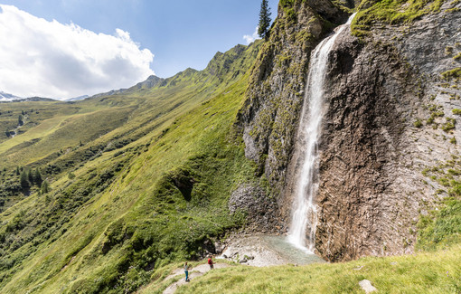Tourenbeschreibung: Halblinks der Talstation der Gletscherbahn sieht man bereits den untersten Wasserfall, den Kesselfall. Über mehrere Kehren (Weg Nr. 16 und AV Weg Nr. 526) hinauf zum Naturdenkmal „Schraubenfälle“. Auf einem schmalen Weg durch den Schutzwald zum Güterweg (Weg Nr. 14), der von Hintertux heraufkommt. Auf ihm nach rechts, vorbei am „Walfischmaul“, einem gespalteten Steinblock, der an ein solches erinnert. Danach die Abzweigung nach rechts auf dem Wanderweg (AV Weg Nr. 526) Richtung „Spannagelhaus“. Auf diesem Weg weiter, bis ein Wegweiser nach rechts auf den „Sommerberg“ hinweist. Über eine schmale Brücke zum wunderschönen Talkessel auf die Waldeben. Abstieg über den Weg Nr. 16 wieder zur Talstation der Gletscherbahn.