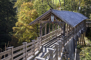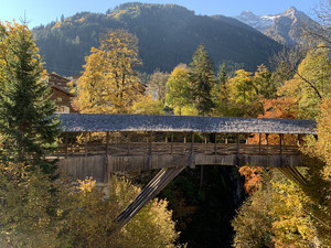 TIPP: Photopoint - Der Blick von der sagenumwobenen Holzbrücke (1876) in die bis zu 70 m tiefe Tuxbachklamm!